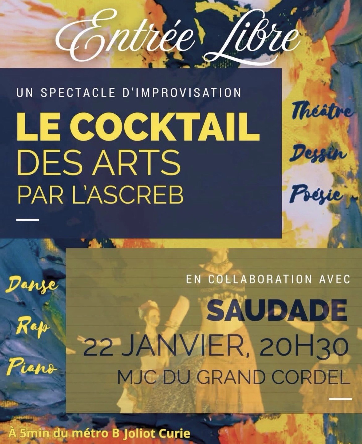 Cocktail des Arts par l’ASCREB Théâtre, dessin, danse, musique… On vous attend au Cocktail des Arts de l’ASCREB! Jeudi 22 janvier – 20h30 MJC Le ...