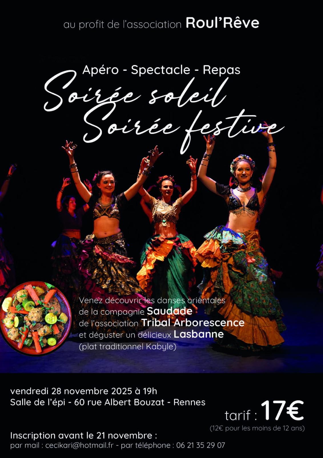 Retrouvez Saudade avec l’association Roul’Rêve! Vendredi 28 novembre 2026 – 19HSalle de l’Epi, 60 rue Albert Bouzat à Rennes (35) « L’ Association Roul’rêve a pour ...
